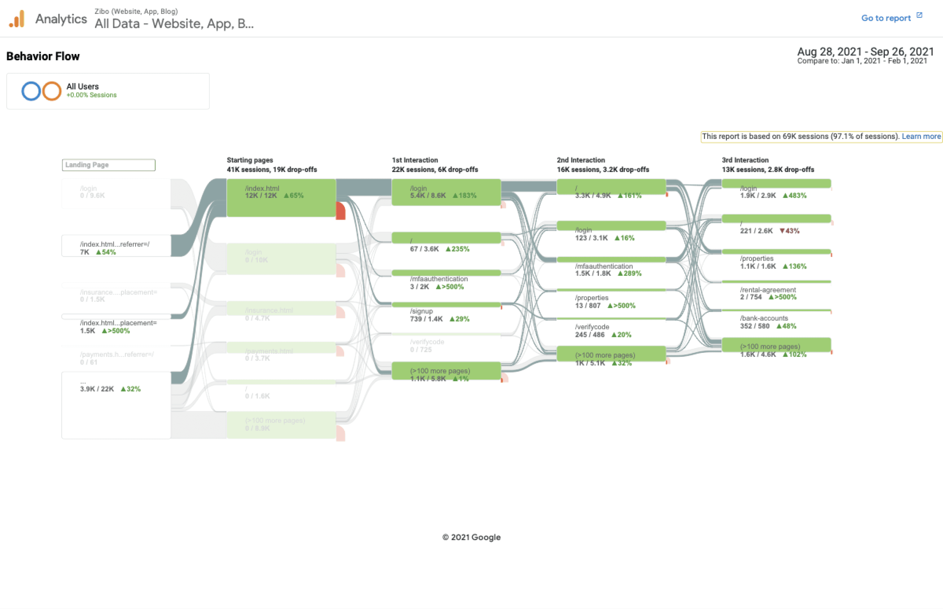 There was significant dropoff right after login during the onboarding phase. Using google analytics, you can see that we had huge churn after sign up. Looking at google analytics, we noticed that out of 41k sessions, we had 19k dropoff.