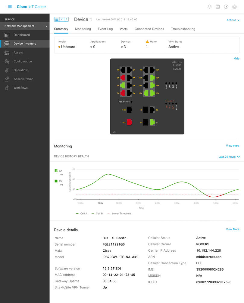 After testing and receiving feedback, we were able to redesign a more scaleable menu, alongside a better generated visual for the factory floor workers to diagnose issues faster. Providing a device view also helps users diagnose where there are issues within the ports of a gateway, switch, or device.